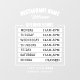 A simple custom business opening hours vinyl window cling decal sign template in a modern minimalist style on a black background. This versatile template allows you to easily design a custom opening times list for your store, salon, restaurant, cafe or any other business. Need help? Feel free to contact me using the message button. I am happy to help with your personalization, additional items or custom orders.