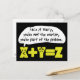 Our little math characters make for a silly pun. Enjoy X Y and Z on this funny Problem postcard.