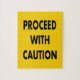 Proceed With Caution word lettering in black color type on a road sign yellow background color.