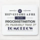 Procrastination joke humor typography. If they created a pill to cure procrastination, I would probably take it tomorrow. In shades of gray and blue font with typography elements,