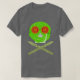 My 11 yo wore adult XL (5’7” 165#). The 8yo is small framed. She wore adult small and tied it in the back. Grandma wore adult large with long sleeve shirt underneath. Tall girl adult medium. Dark haired male adult large. Good quality dark Heather gray, Gildan brand shirt. -it was next up from basic choice and cost about $20 per shirt. Not too thick or thin. Washed and dried well, no major shrinkage. Not see-through. Can wear a bra under it fine. Screen print is just as shown and well done, front and back.