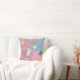 A digital preview of a small, square decorative throw pillow or cushion. The product features a soft, custom design with scattered illustrations of colorful butterflies and subtle feathers, all set on a blended background of gentle pastel pink, purple, and blue tones, suggesting a charming and whimsical home decor accent. The pillow is displayed resting on a fluffy, textured surface for visual merchandising.