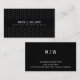 A modern black professional card with basic information only... your name ('unica one' font style) on a blk. stripe with custom occupation (computer systems analyst), a pattern of initials... and address, email and phone at the back...