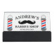 Professional barber shop business card holder with mustache logo. Traditional red and blue stripe barber pole drawing for men's hair salon. Stylish gift for hair salon owner. Make your own trendy barber shop presents for boss, coworker, employees etc. Unique hair stylist gift ideas. Personalized with your own business name or company slogan.