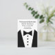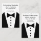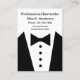Tuxedo graphic business cards for a professional Bartender, Personal Concierge, or Personal Assistant business card template designed as a two side design with image of a tuxedo and bow tie graphic and simple layout you can customize online. Presented on large format business cards that in vertical are wider than standard size business cards for more visual impact.
