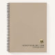 Modern professional notebook features a minimalist luxury design with brushed metallic gold monogram emblem on simple plain beige background. Custom name presented in the lower right-hand corner in stylish simple font with a complimentary minimal monogram medallion. A modern notebook for home or office, a professional monogrammed binder for your workspace. Ideal for consultants, attorneys, real estate agents, corporate or executive coaches, or any other business professional, or a thoughtful office gift for him or her.