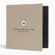 Professional Beige Monogram Initial Name & Title 3 Ring Binder