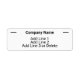 These business return address labels are black and white. There are four lines of black display text for your company name and return address. All text can be edited or deleted.