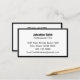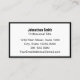 This minimalist business card is double-sided. Both sides have an elegant black border. Side one has lines of display text for your name, address, phone number, and email address. Side two has a display image you can replace with your QR code or another image. All text can be edited or deleted. The text is black.