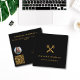Professional Black & Gold Crossed Pens QR Code Square Business Card