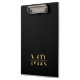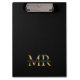 Stylish and modern, professional black custom clipboard with your monogram/initials and name in elegant gold. Contact us for help with customization or to request matching products.