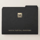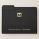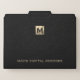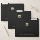 Organize your important documents in style with this sleek and professional file folder set. Featuring a sophisticated black leather print background, each file folder is adorned with a brushed metallic gold initial logo emblem at the top, exuding a sense of prestige and professionalism. The company name elegantly displayed in the lower thirds adds a personalized touch to these folders. Designed with financial planning firms and professional services in mind, these file folders are perfect for storing and presenting client files, contracts, and important paperwork. Elevate your business organization and make a lasting impression with this premium file folder set.