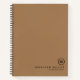 Modern notebook features a minimal design in a classic black and tan color palette. Custom name presented in the lower right hand corner in stylish simple font with a complimentary minimal monogram medallion.