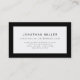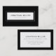 Professional business card featuring a minimalist design in a black and white color palette. Custom name and title presented in complimentary black frame with white accents. The back of the card is complimentary to the front with name, email address and contact information presented in coordinating minimalistic typography.