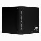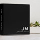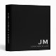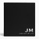 Modern professional binder features a minimal design in a classic black and white color palette. Custom name presented in the lower right-hand corner in stylish simple font with complimentary monogram initials in bold classic block typography.