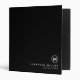 Modern professional binder features a minimal design in a classic black and white color palette. Custom name presented in the lower right hand corner in stylish simple font with a complimentary minimal monogram medallion.