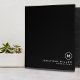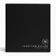 Modern professional binder features a minimal design in a classic black and white color palette. Custom name presented in the lower right hand corner in stylish simple font with a complimentary minimal monogram medallion.