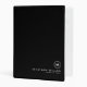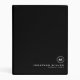 Modern professional mini binder features a minimal design in a classic black and white color palette. Custom name presented in the lower right hand corner in stylish simple font with a complimentary minimal monogram medallion.