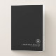 Modern professional folders feature a minimal design in a classic black and white color palette. Custom name presented in the lower right hand corner in stylish simple font with a complimentary minimal monogram medallion.