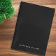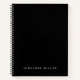 Modern notebook features a minimal design in a classic black and white color palette. Custom name presented in the lower third in stylish simple font.