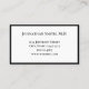 This professional doctor's appointment card is double-sided. Both sides have an elegant black border. Side one says "Your Next Appointment" and has lines for the date and time of the appointment. At the bottom, there's display text you can edit to create a custom message if desired. (Shown: Kindly provide 24 hours notice if unable to keep your appointment.) Side two has display text to replace with the doctor's name (or practice name) and its address, phone number, and website. All text can be edited or deleted. The text is black.