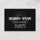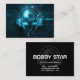 Unique DJ visiting card with an abstract blue exploding DJ symbol on a dark black card. A professional Dj and producer business card!