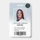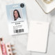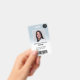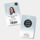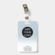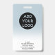 A modern, and professional pastel blue ombre nurse photo id badge with logo and barcode.