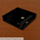 Custom paperweight designed for law firms featuring a solid black background, company name and contact information in classic golden typography. The brushed gold legal-themed logo can be used as is or replaced with your firm's logo. Elegant branded desk accessories for employees, partners or client appreciation gifts.