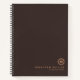 Modern notebook features a minimal design in a simple brown color palette with complimentary neutral accents. Custom name presented in the lower right hand corner in stylish simple font with a complimentary minimal monogram medallion.