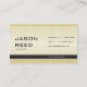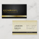 Business card design with front and back page on black background (front) and ocher (back) with classy stripes.