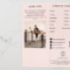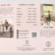A professional blush pink trifold business promotional brochure template for all your business marketing needs. This modern business brochure has been created for you to simply customize and make your own. This detailed business brochure includes your business logo that can be replaced with the placeholder, as well as custom 2 photos, text, price lists, business opening hours, QR Code, contact details. Everything you need to inform your customers about your business.