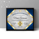 Award someone with this Professional & Elegant 8.5x11 Certificate of Achievement Award Flyer featuring gold & blue colortones, and a grey gradient background. Includes two gold medal awards.