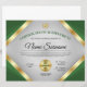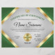 This professional certificate of achievement award design features a variety of green and gold shades, and a grey background. Includes two gold medal awards and two signature lines.