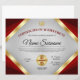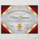This professional certificate of achievement award design features a variety of red and gold shades and a grey background. Includes two gold medal awards and two signature lines.