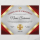 This professional certificate of achievement award design features a variety of red and gold shades and a grey background. Includes two gold medal awards.