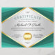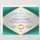 Professional Certificate Award Features A Variety Of Teal Shades & Gold Diamond Outline. Includes A Gold Medal Award.