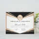 This modern professional certificate of achievement award features black and beige color tones, and a subtle white & grey gradient background. Includes a medal award with black stars. Personalize to your liking.