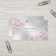 This professional business card features pink cherry blossom branches on a faux silver foil background and elegant modern minimalist fonts. Fitting for makeup artists, spa, landscaping, wedding planners, event planners, cosmetologists, beauty salon...