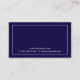 Professional Classic Navy Blue and White Business Card featuring your information in white and grey serif font style with white rectangle border.