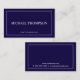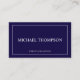 Professional Classic Navy Blue and White Business Card featuring your information in white and grey classic serif font style with white rectangle border.