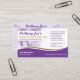 Boost publicity with these double sided professional business cards (template) for house cleaning, housekeeping or janitor (janitorial) small business. These cards are designed with purple text and a gold (faux) glitter color on the front side with purple text on the back. Customize the business cards by adding or removing elements to suit your company's brand.