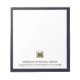 Elevate your note-taking with our Monogram Initial Emblem Blue Notepad. The front features a brushed gold monogram initial emblem tastefully positioned, accompanied by your company name, address, and contact information in a sleek design on a clean white background. The composition is framed in a rich blue textured print, adding a touch of sophistication. This notepad offers a perfect blend of functionality and style, making it ideal for consultants and consulting firms aiming to project professionalism in their everyday tasks. Organize your thoughts and tasks while showcasing your brand's elegance with this premium notepad.