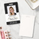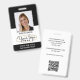 Create a professional appearance with this stylish identification badge. A simple template personalized with your ID photo, name, job title, and company logo. Return details are on the back, along with additional information, and a QR code. All the text can be customized to suit your business needs. This versatile design would suit many different workplaces including corporate professionals, business consultants, retail workers, medical staff and more. Printed colors: black and white.