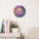 Modern Professional Dentist / Dental Clinic / Dental Office / Dental Care / Dental Hygienist / Cosmetic Dentist / General Dentist / Equine Dentist Wall Clock Template - Elegant Colorful Glowing Chic Rose Gold Tooth on Black Metallic Background.