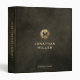 Modern Professional Distressed Leather Texture Background Brushed Metallic Gold Monogram Medallion Classic Block Typography Initial Name Title Custom Text Black Chestnut Brown Home Office Work School Binder