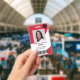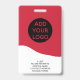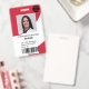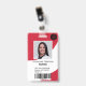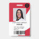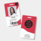 A modern, and professional editable red nurse photo id badge with logo and barcode.