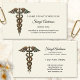 Professional elderly or senior citizen medical care business card featuring a caduceus in a metallic style on a cream colored background with a slight stone printed texture to add class.