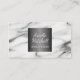 Classic elegance in this gray and white alabaster marble pattern with coordinating gray reflective square frame inset. Shown here as a jewelry designer business card, this design works well for many professions and business types, both masculine and feminine. There is sample text on the reverse side of the card that includes social media contact information. Edit this with your specifics. You can add or remove lines of text as needed and move things around to suit your style and requirements.