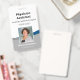 These vertical ID badges are easy to customize with name, title, hospital name, logo, and ID number on the front. On the back is an opportunity for a bar code and return information. If you need any assistance, feel free to message me. I'm always happy to help.