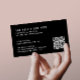 Minimal and elegant black professional business card for your employees featuring your company or firm name, your employee's name and title, and contact information (such as email, telephone numbers, and street address) in clean, simple and modern white typography. Input a URL address to create a scannable QR code linked to your website, or social media profiles. On the back, customize additional text or leave blank.